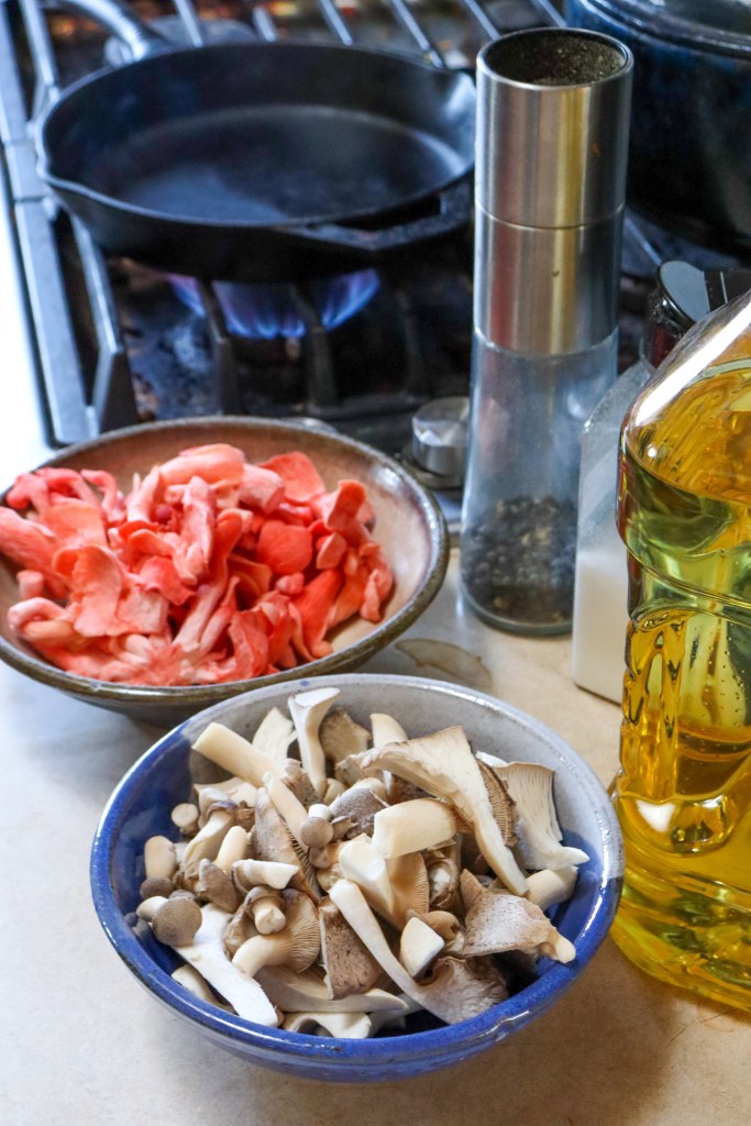 You can grow more than plants indoors! Harvesting pink and king oyster mushroom’s today. The growing medium for the mushrooms is hardwood sawdust that has been introduced to grains inoculated from liquid cultures.