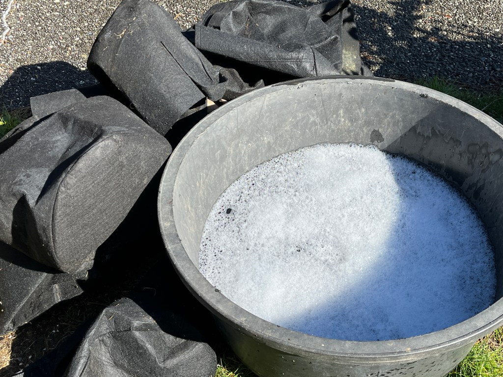 Sanitizing all the pots and grow bags before replanting in them is one of the first steps of Spring cleaning. This ensures any pathogens or bacteria that may have accumulated over the winter months are eliminated, providing a clean slate for my new seedlings to grow.