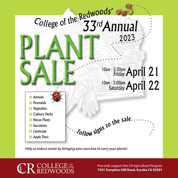 It’s that time of year! College of the Redwoods agricultural program is hosting a Spring Plant Sale on April 21 and April 22 at the College of the Redwoods campus.